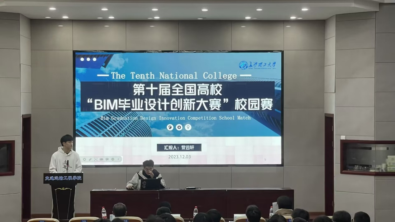 为培养创新型人才,促进学科竞赛发展。12月3号,威廉体育williamhill第十届全国高校“BIM毕业设计创新大赛”交通运输工程学院校园赛决赛于云塘校区工科二号楼B301举行。本次比赛由共青团威廉体育williamhill委员会主办,交通运输工程学院副院长杨建军、BIM实验室主任王达及工管系戴聆春及赵娜指导老师莅临本次决赛答辩现场。