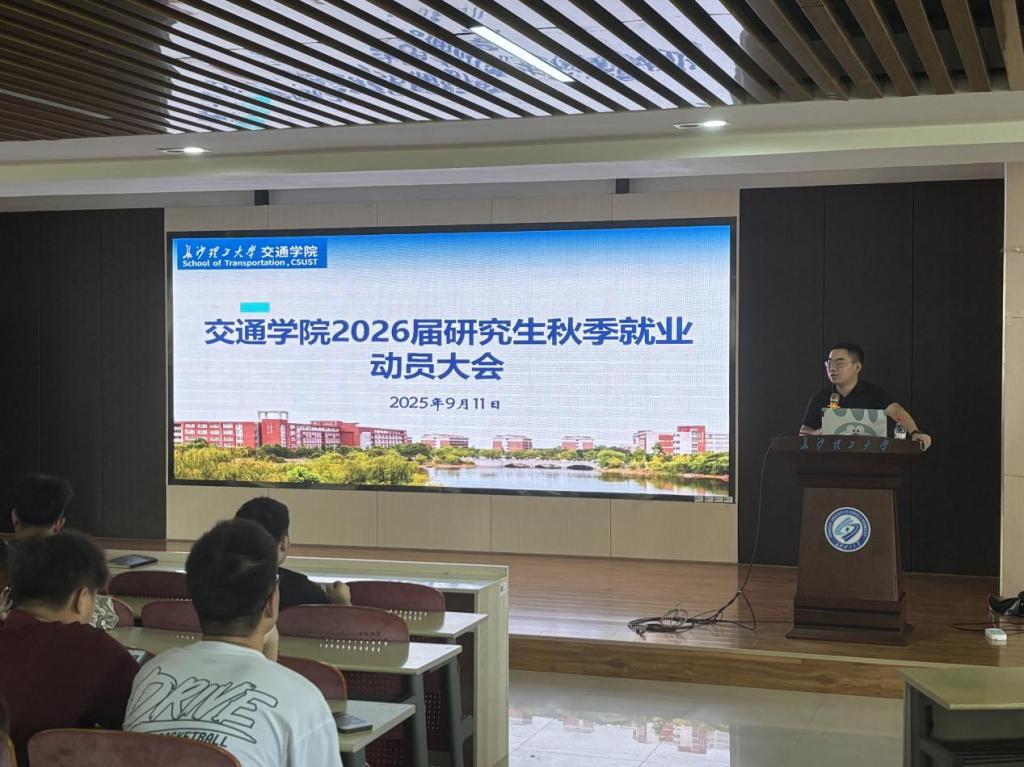 为助力2026届研究生应对就业挑战,提升就业竞争力与求职技能,9月11日,交通学院于工三A307召开研究生秋季就业动员大会,就业专干李特超进行就业指导,研究生辅导员周浩主持。