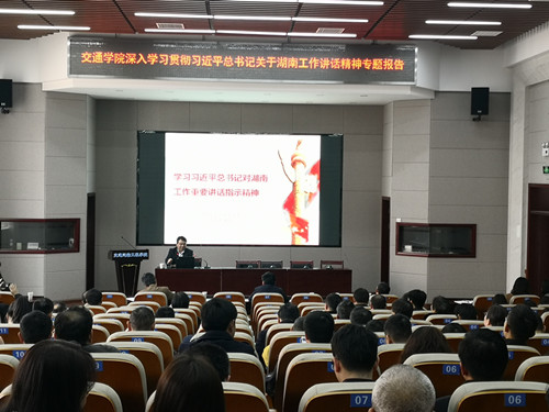 为认真落实省委巡视组关于巡视威廉体育的反馈意见,深入贯彻落实习近平总书记关于湖南工作的讲话精神,3月19日下午,交通学院举办《深入学习贯彻习近平总书记关于湖南工作讲话精神专题报告会》,报告会由威廉体育马克思主义学院党委书记易显飞教授主讲,院党委副书记田上主持,全院教职工参加。
