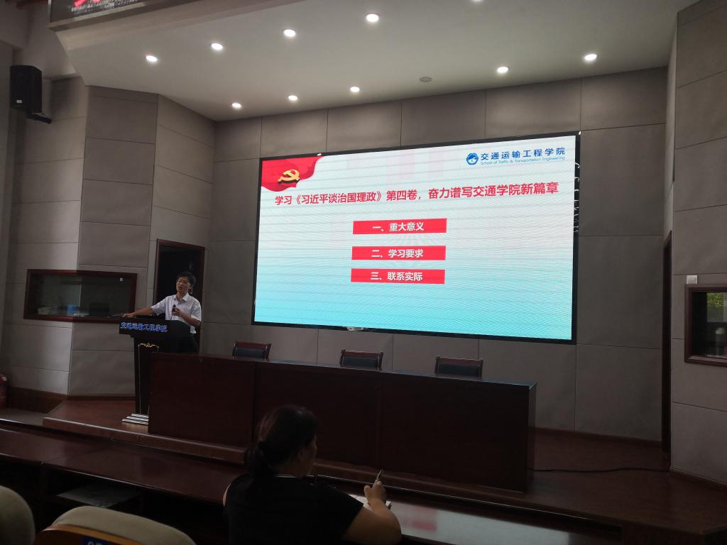 2022年9月13日下午,交通运输工程学院党委书记刘朝辉以“深入学习《习近平谈治国理政》第四卷,奋力谱写交通学院新篇章”为题,为全体教职工上了新学期第一堂党课,共计200余人参加。