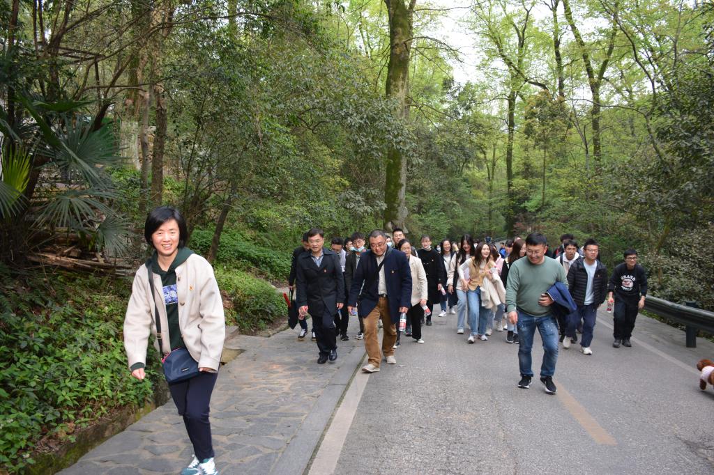 从岳麓书院进门的石碑到赫曦台,从正门到二门,从书院讲堂到御书楼,再到半学斋和书院的陈列馆,讲解员生动讲述着岳麓书院蕴含的文化精髓,同志们认真聆听岳麓书院动人的历史,感悟书院的人文精神,不时向讲解员提问,更深层次的探讨和了解岳麓书院的精深文化。特别是“岳麓书院学规”碑刻上的108个字,对现代教育工作者和学子们仍有着深刻的启迪意义。参观完岳麓书院后,大家沿着书院后门的石板路向上而行,攀爬到岳麓山顶上,开展户外拓展活动,进一步感悟麓山人文传承和湖湘文化的高深。