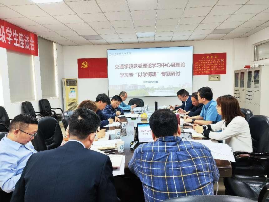2023年5月8日上午10点,交通学院党委理论学习中心组在云塘校区工二B401会议室举行理论学习暨“以学铸魂”专题研讨,院党委书记刘朝辉主持,全体中心组成员参加。