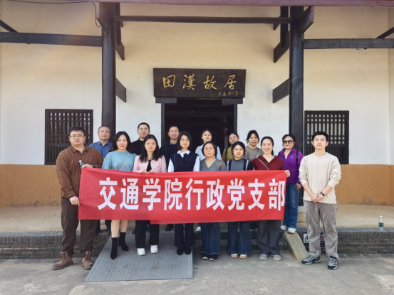 3月21日,交通学院行政党支部全体党员前往爱国主义教育基地-田汉文化园,开展"党建引领聚合力 深化改革添动力"主题实践,瞻仰革命先辈遗迹,感悟红色文艺精神,传承革命精神。
