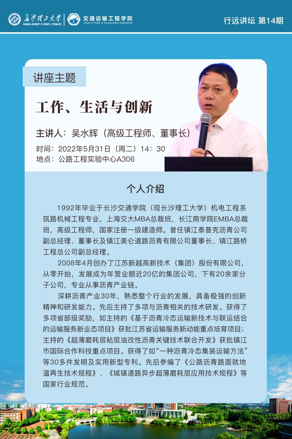 江苏新越高新技术(集团)股份有限公司董事长吴水辉高工来我院讲学