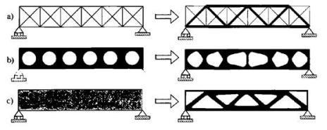 另一种新型技术,拓扑优化因其不依赖初始构型及工程师经验,可获得完全意想不到的创新构型,受到学者以及工程人员的广泛关注。通俗地讲,拓扑优化就是利用优化的手段,寻找结构内部哪里需要布置材料,布置何种材料,在保证一定约束下获取最优的性能。然而,拓扑优化结果几何构型复杂,采用传统建造工艺制备非常困难,因此拓扑优化方法与实际工程结构设计之间仍存在较大的鸿沟。而将其与3D打印混凝土技术一起使用,则是一桩天作之合,其发展创新设计技术具有广阔的前景,已引起学术界的广泛关注。