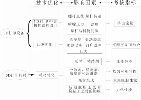 打印耗材设计方法:针对不同的陶瓷粉末对粘结剂成分、各粘结剂配比、固含量以及混料工艺的参数进行调控,以制备出流变性能和均匀性好,成型性优异且易于脱脂的耗材。