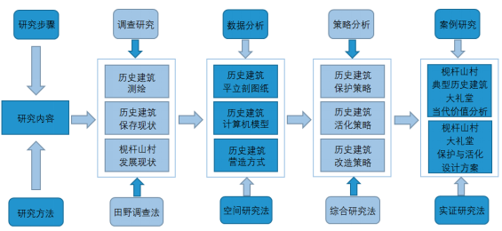 本研究在精准扶贫背景下,对新宁县枧杆山村历史建筑进行普查与分析,制定历史建筑保护与活化策略,并对典型历史建筑大礼堂进行保护活化方案设计,以达到弘扬传统文化,促进旅游业发展,振兴乡村、精准扶贫的目的。