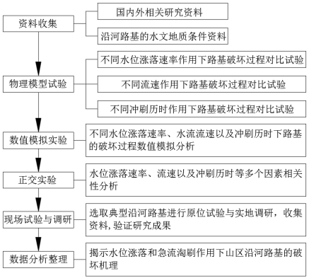 山区沿河公路极大改善了当地交通条件,促进了社会经济发展。但山区河流水位涨落快、水流冲刷大,常导致沿河路基破坏,甚至造成严重的生命财产损失。然而目前水位涨落和急流淘刷联合作用下山区沿河路基的破坏机理尚不清楚,给山区公路的建设与运营维护带来了非常不利的影响。