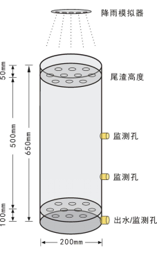 将采集来的尾渣充填于有机玻璃柱内,人工模拟降雨淋滤,监测废水产生量和水质变化情况。实验装置如图1。
