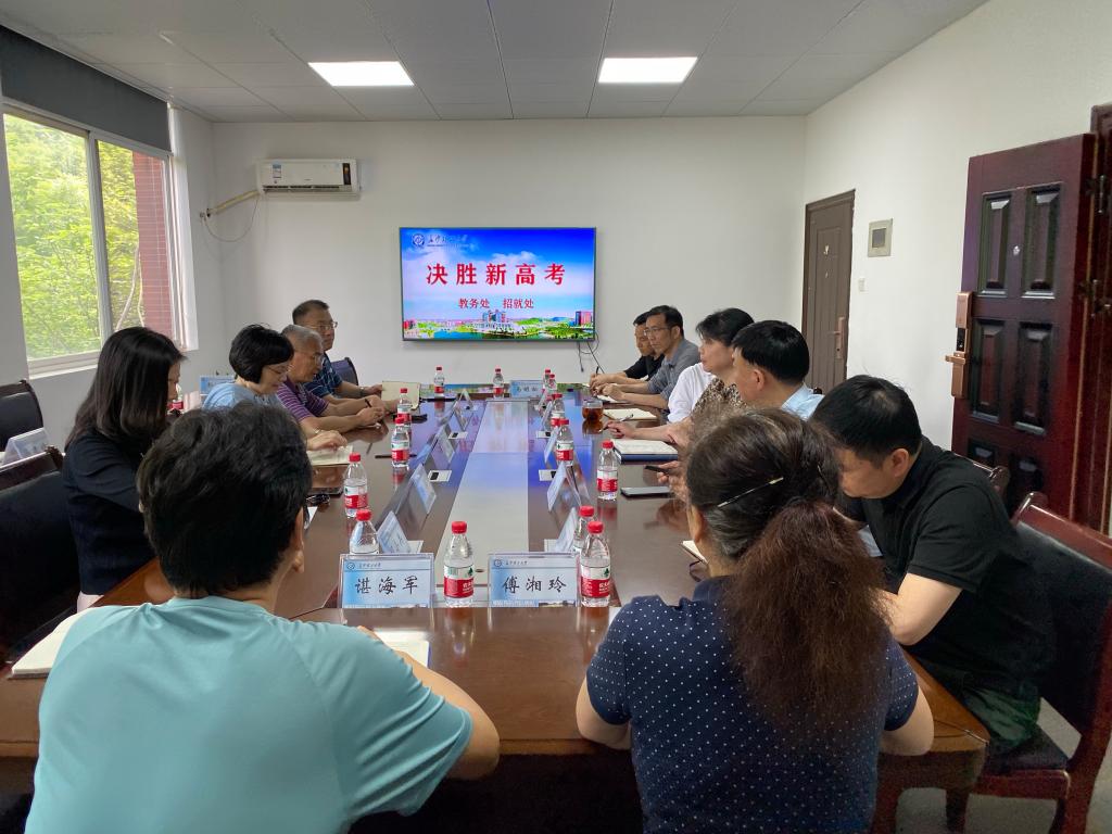 为积极应对新高考改革,深入学习新高考政策, 6月1日上午,教务处全体处领导、科级干部与招就处全体人员在招就处会议室学习、研讨了新高考政策,招就处处长曹瑛主持会议。
