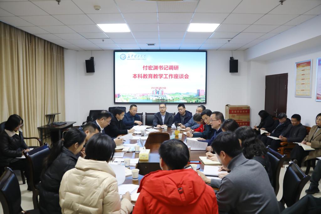 付宏渊强调,教育是国之大计、党之大计,事关国家发展、民族振兴和社会进步,要落实好立德树人根本任务,传承红色基因,坚持和立足扎根中国大地,办好人民满意的大学,回应人民群众的期盼关切;实施高等教育跨越式发展战略,坚持以改革的精神和改革的办法,不忘教育初心,不断推进教育创新,增强危机意识,聚焦“全面提高人才自主培养质量”,突破难点,创新发展理念,构建学校人才培养新发展格局。