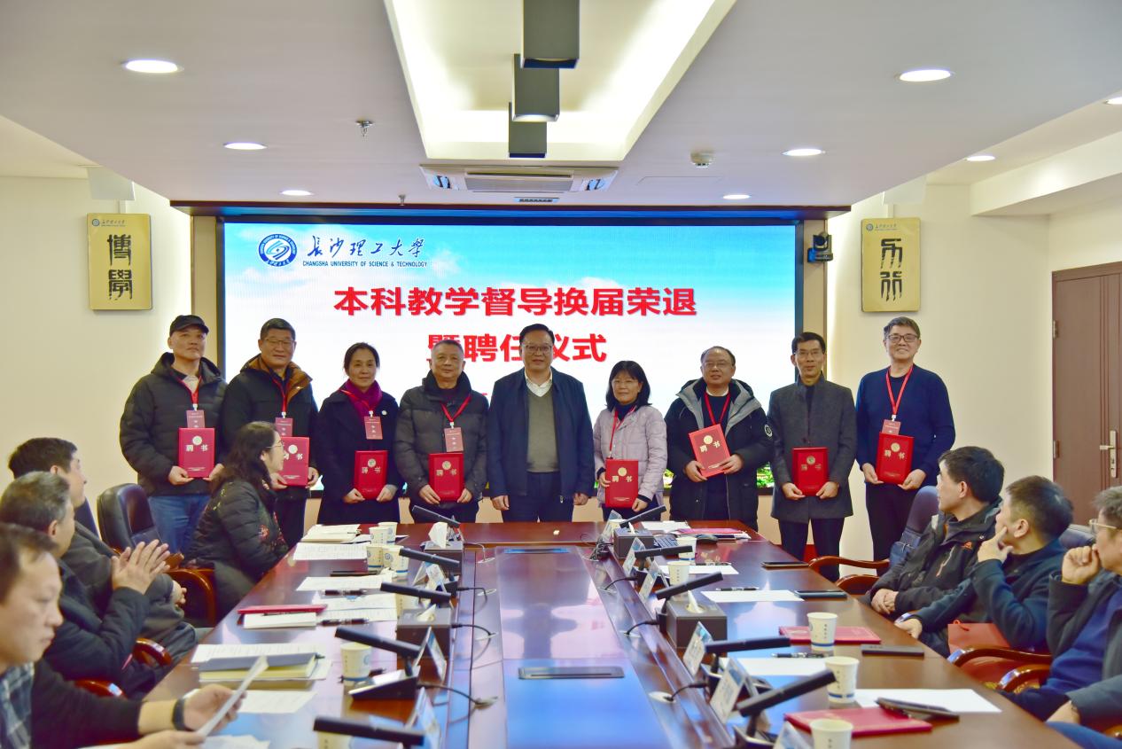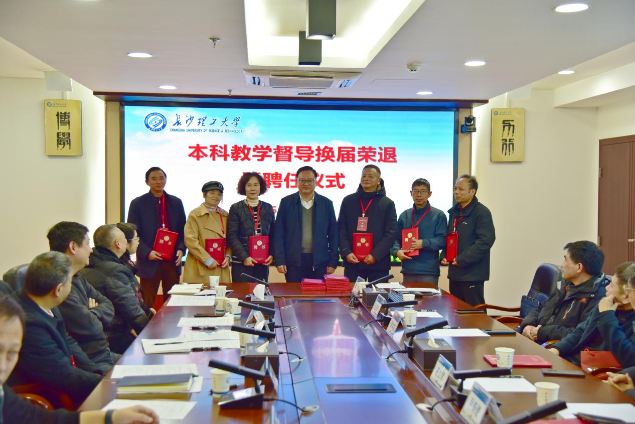 教务处处长王威宣读了《关于成立第九届本科教学督导团的通知》,副校长刘朝晖为本次换届光荣退任的唐立军、尹奇德、梁向东、黄祖洪、赵继光等7位专家颁发荣退证书,向新任第九届本科教学督导的23位专家颁发聘任证书。尹奇德教授代表荣退专家发言,他感谢学校、教务处领导的信任与支持,感谢各位督导的紧密配合与辛勤付出,祝愿新一届督导团在推动教学质量提升的道路上再创辉煌,祝愿学校在双一流创建中稳步前行,取得新的突破。丁琪琳副教授代表新聘督导专家发言,感谢组织和领导的信任、肯定与鼓励,作为督导工作的新兵,责任重大,使命光荣,将以坚持“以学立身”、坚持“一线视角”、坚持“温度督导”来履职尽责。