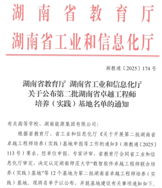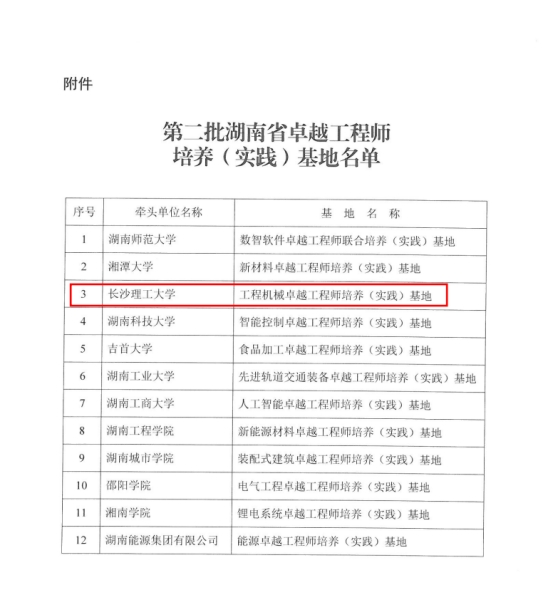 近日,湖南省教育厅、湖南省工业和信息化厅公布了湖南省第二批卓越工程师培养(实践)基地立项名单,由威廉体育卓越工程师学院牵头,联合湖南星邦智能装备股份有限公司、湖南五新隧道智能装备股份有限公司共同申报的“威廉体育williamhill工程机械卓越工程师培养(实践)基地”获批立项。