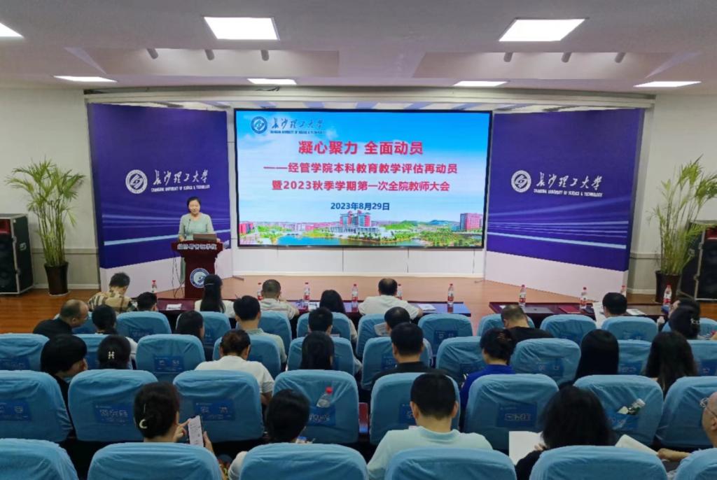 8月29日,经管学院在金盆岭校区12教200报告厅召开本科教育教学审核评估动员会,对新一轮本科教育教学审核评估工作进行再动员,号召全院上下统一思想、凝心聚力,全力以赴做好审核评估工作。院党委书记丁丹出席会议并讲话。院领导班子成员及全体教职工参会,会议由院党委副书记唐青主持。