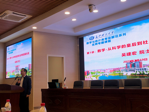 黄创霞副校长首先介绍了数学与统计类专业前沿系列名师专题课程,接着隆重介绍了吴建宏院士,对吴院士的到来表示热烈欢迎。同时,黄校长希望同学们能珍惜难得的学习机会,向榜样学习。