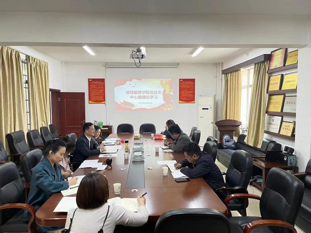 4月19日继教学院党总支理论学习中心组在15教学楼三楼会议室组织集中学习,学习了中共中央办公厅印发的《关于推动党史学习教育常态化长效化的意见》、教育部办公厅颁布的《教育部办公厅关于严格规范高等学历继续教育校外教学点设置与管理工作的通知》教职成厅【2022】文件以及2022年《政府工作报告》。党总支书记何纯芳主持会议,院长邹兴平、院党总支理论学习中心组全体成员出席,谢士成副书记和谢朝华副院长做中心发言。