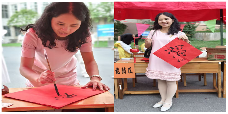 “翰墨飘香区”则弥漫着淡淡的书卷气息。这里准备了笔墨纸砚,供师生们亲手书写中秋诗词、美好祝愿。一横一竖,一撇一捺,大家在挥毫泼墨间体验中国书法的神韵,将团圆之情寄托于翰墨之中。