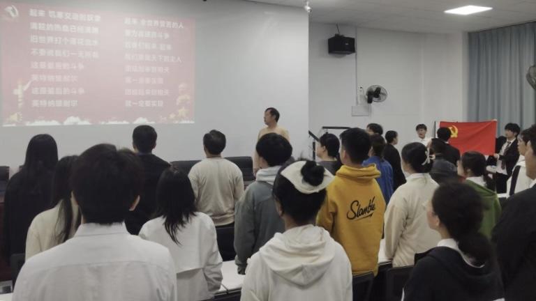 会议在激昂的《国际歌》声中拉开帷幕。5名学员代表依次上台分享入党感悟,坚定表态将始终践行“全心全意为人民服务”的宗旨,主动发挥党员先锋模范作用。