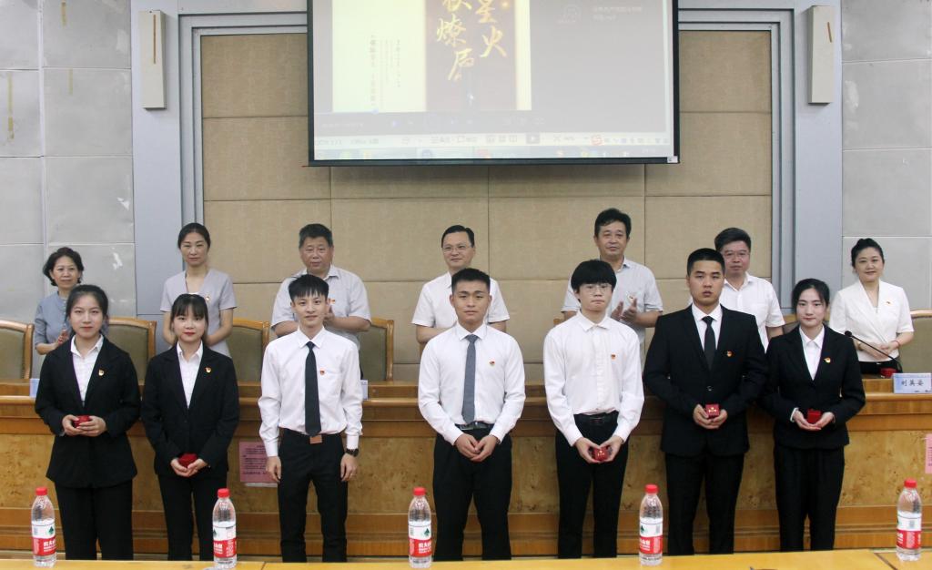 院领导亲手为新发展的16名党员同志配戴上党徽。