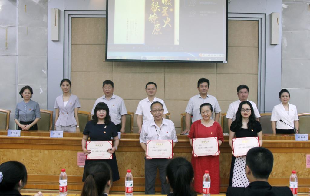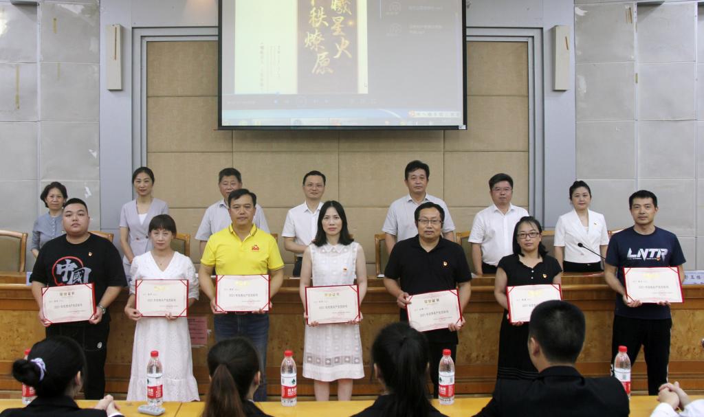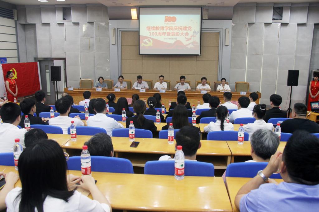 铭记百年路,奋进新征程。6月29日下午,继续教育学院召开庆祝建党100周年暨表彰大会。党总支书记何纯芳,正处级组织员方碧波,正处级纪检员易贵民,副院长向英、刘英姿,总支委员李飞云和全院教职工(含外聘职工)党员、学生党员参加大会。会议由院长邹兴平主持。