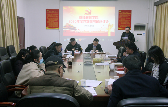 1月21日下午,继教学院召开2020年度党支部书记述评会。党总支班子成员和各支部书记、支委参加。副书记兼副院长方碧波主持。