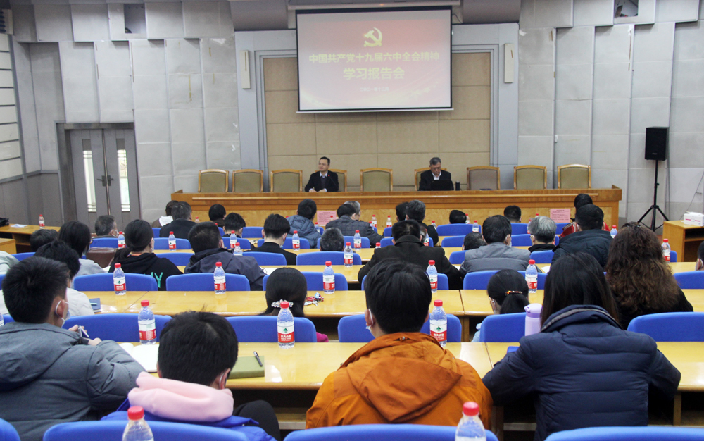 2021年12月21日下午,继教学院、城南学院、校友中心在金盆岭校区办公大楼一楼多功能报告厅,联合举办了十九届六中全会精神学习报告会,邀请副校长谈传生教授为三个部门的全体教职工作了学习辅导报告。