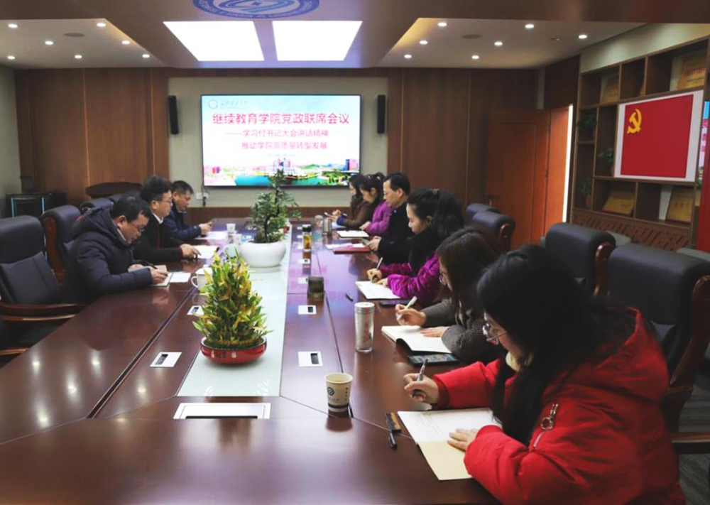 继教学院积极学习落实学校党政工作例会(扩大)精神,于2月26日召开了以“学习付书记大会讲话精神,推动继续教育学院高质量转型发展”为主题的党政联席会议。会上,邹兴平院长强调,学习付书记大会讲话精神,就是要领会精神实质,从中吸取力量,增强自信,启迪创新思路,激励全院师生以更大的胆量开拓创新,以更大的勇气克服困难,以更大的使命感为学校“百强”大学建设作贡献。邹兴平结合学院发展实际状况,引导学习了付书记的大会讲话,并要求各分管领导将学校会议精神传达至各自负责部门员工,要求各部门负责人围绕当前工作的重点、难点,创新思路,探讨具体转型发展措施,拟定本年度创新工作。