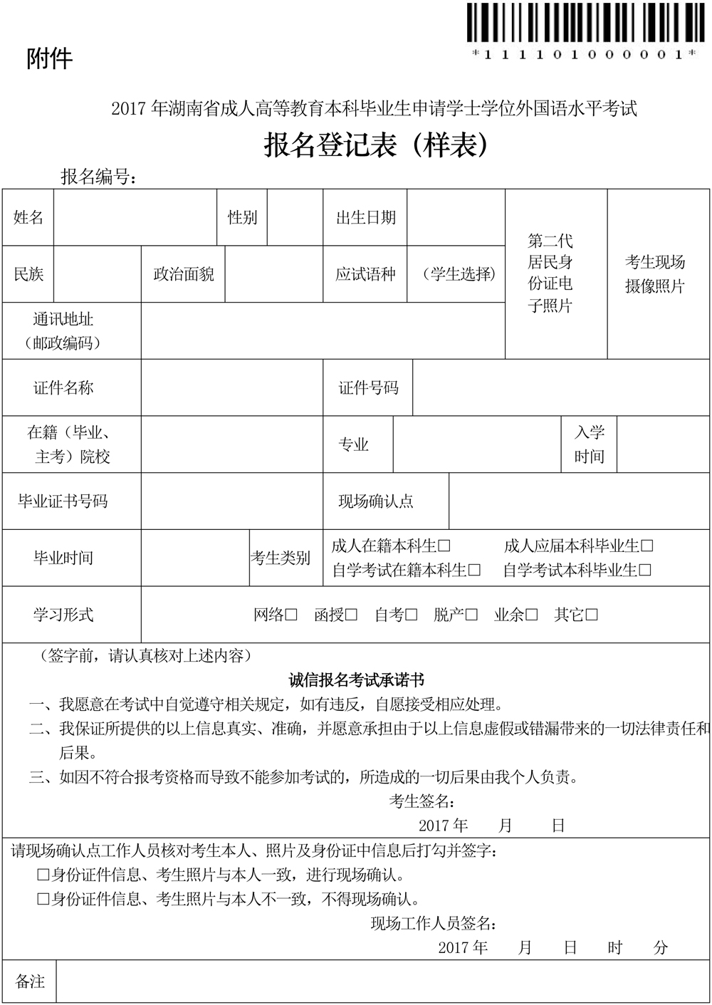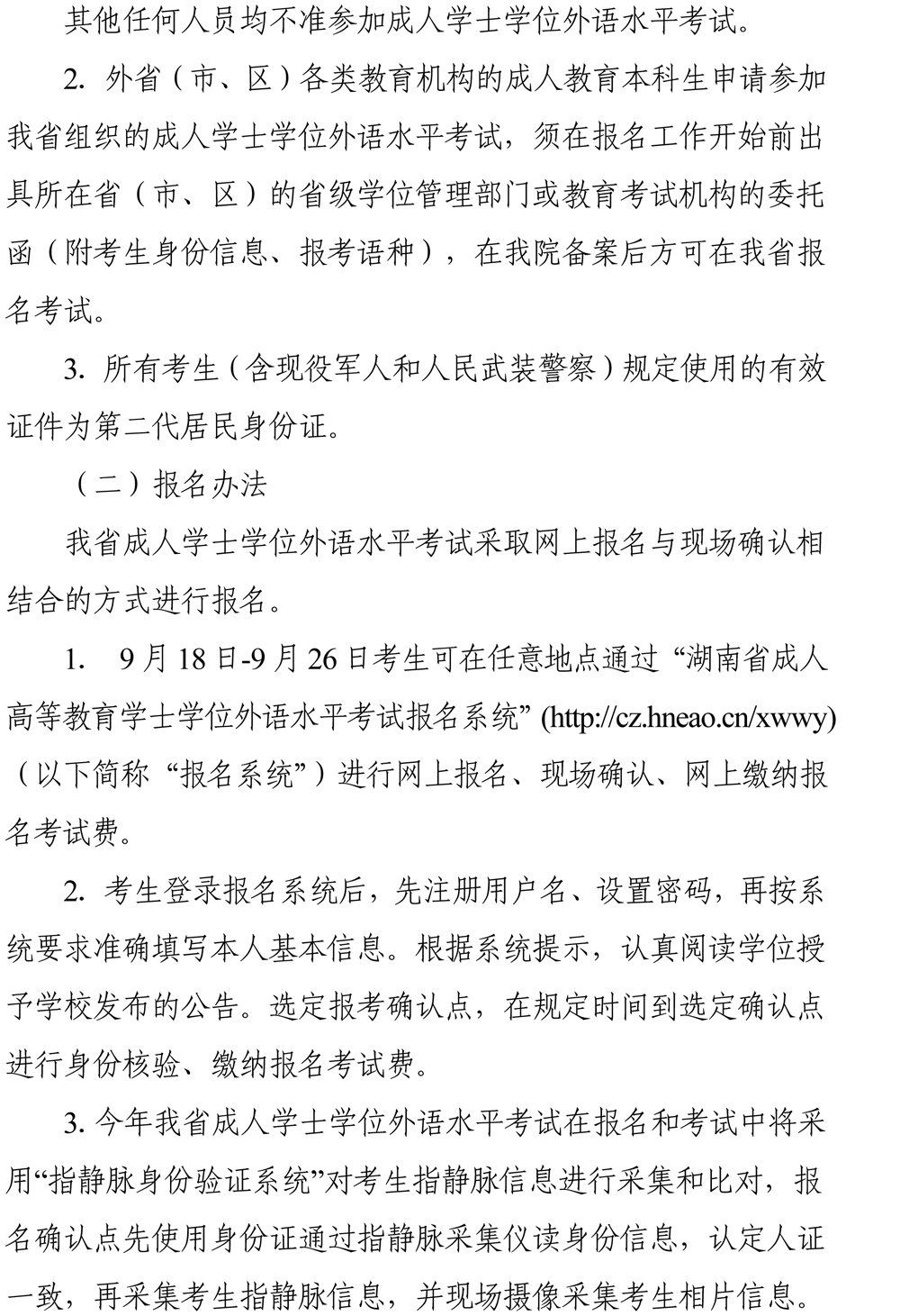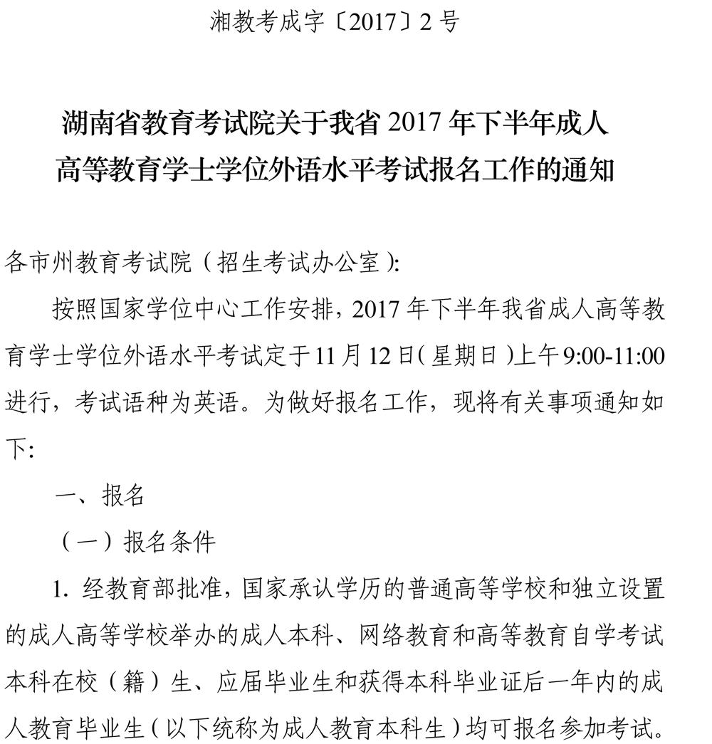 湖南省教育考试院关于我省2017年下半年成人高等教育学士学位外语水平考试报名工作的通知