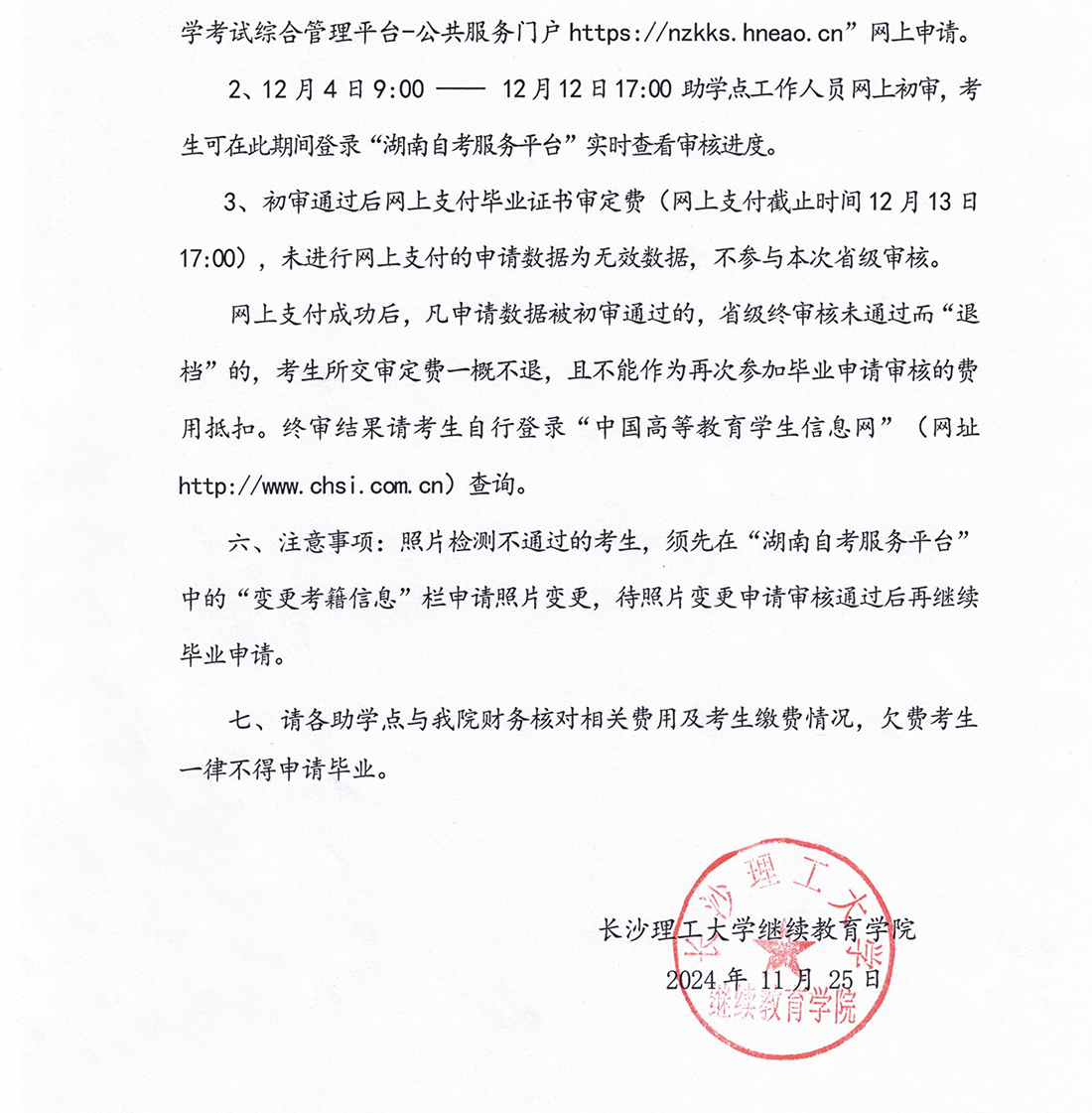 关于做好2024年下半年高等教育自学考试毕业资格审核与办证工作的通知