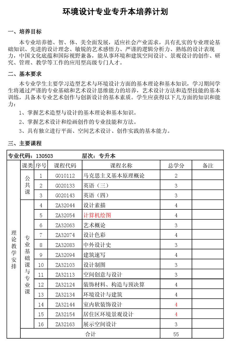 本科培养计划-专业代码:130503 环境设计专业