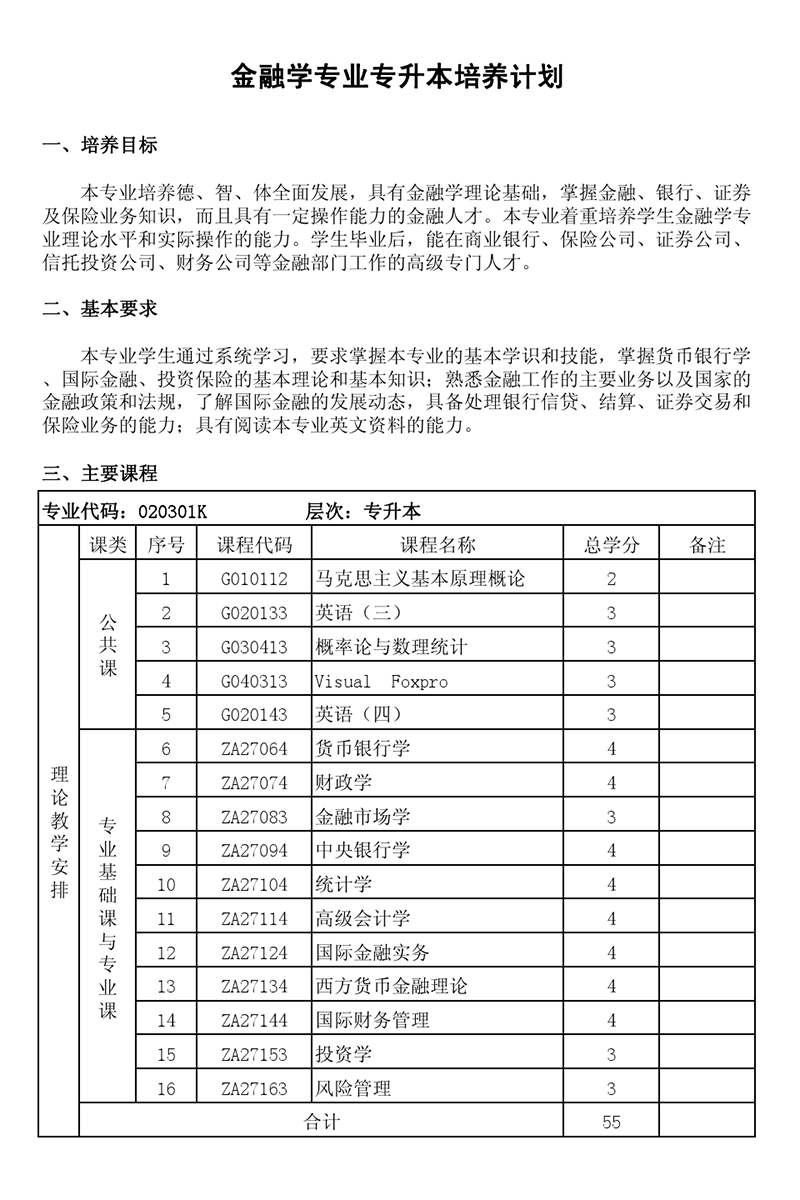 本科培养计划-专业代码:020301K 金融学专业