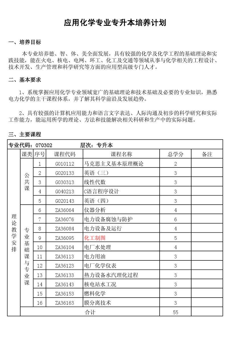 本科培养计划-专业代码:070302 应用化学专业