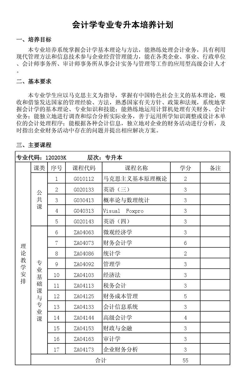 本科培养计划-专业代码:120203K会计学专业