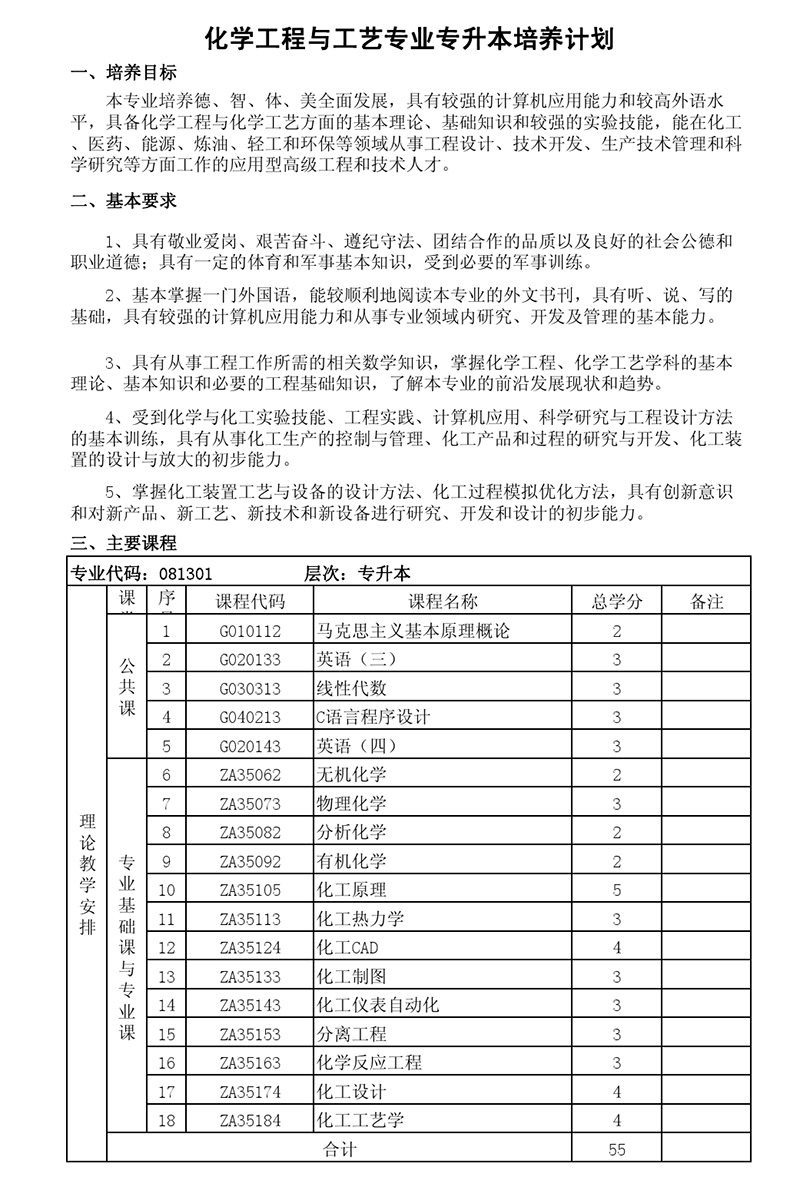 本科培养计划-专业代码:081301 化学工程与工艺专业