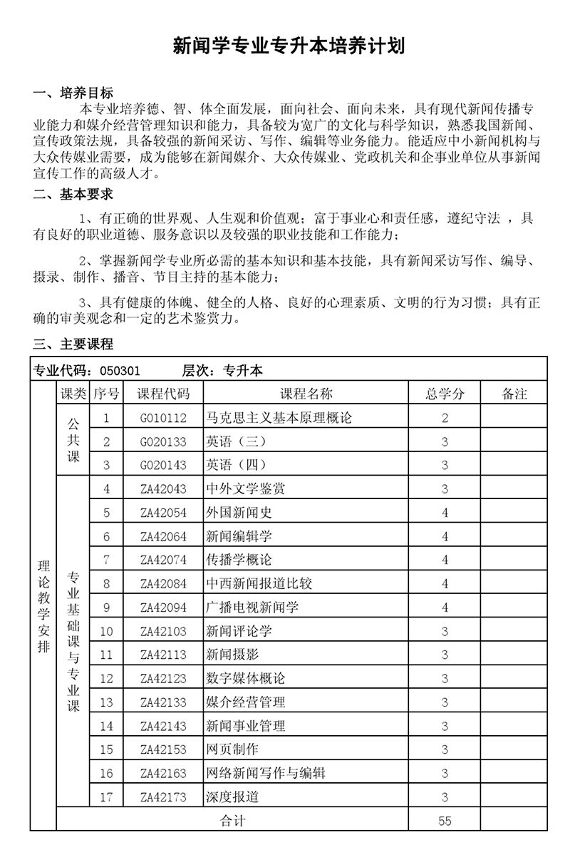 本科培养计划-专业代码:050301 新闻学专业