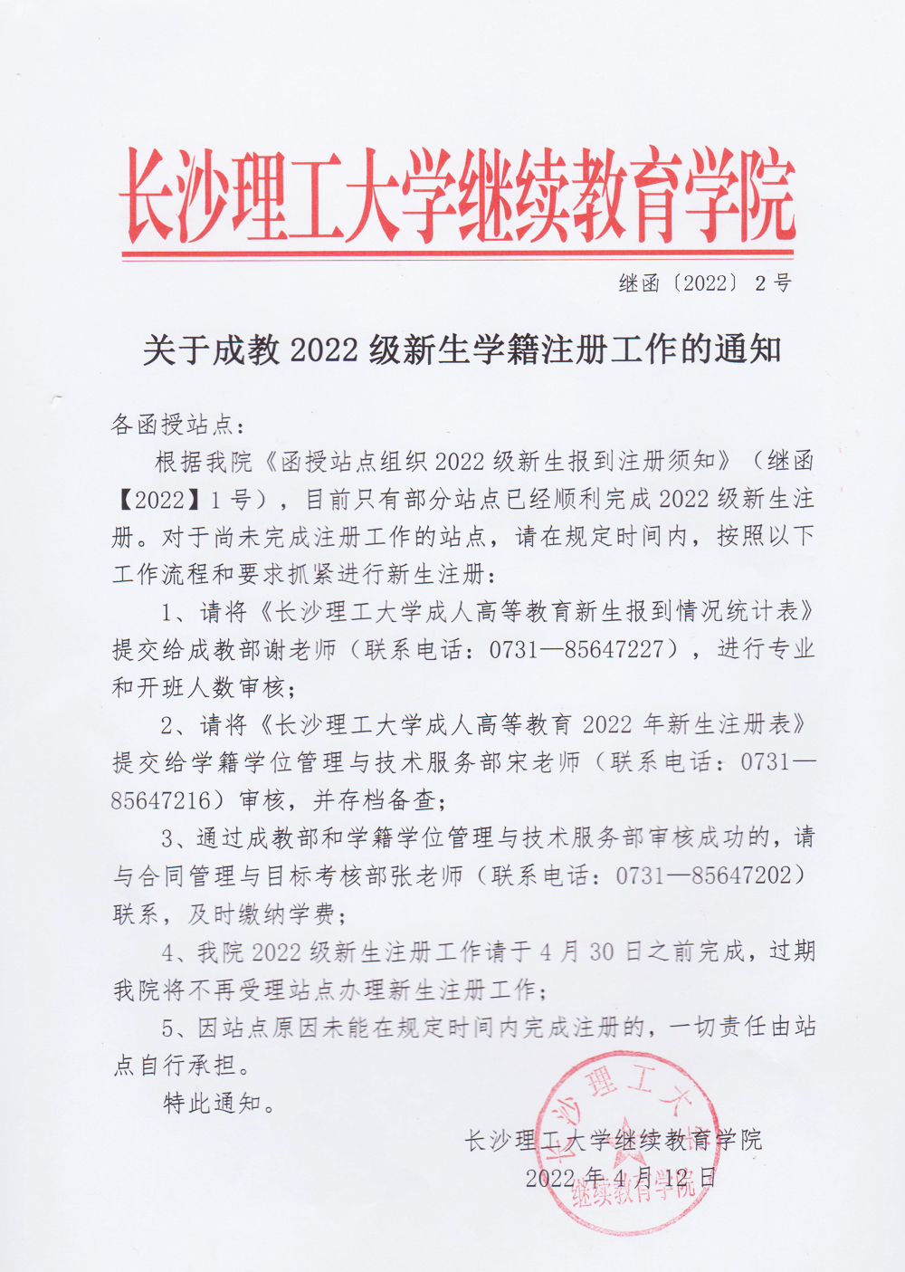 关于成教2022级新生办理入学报到、缴费注册手续的通知