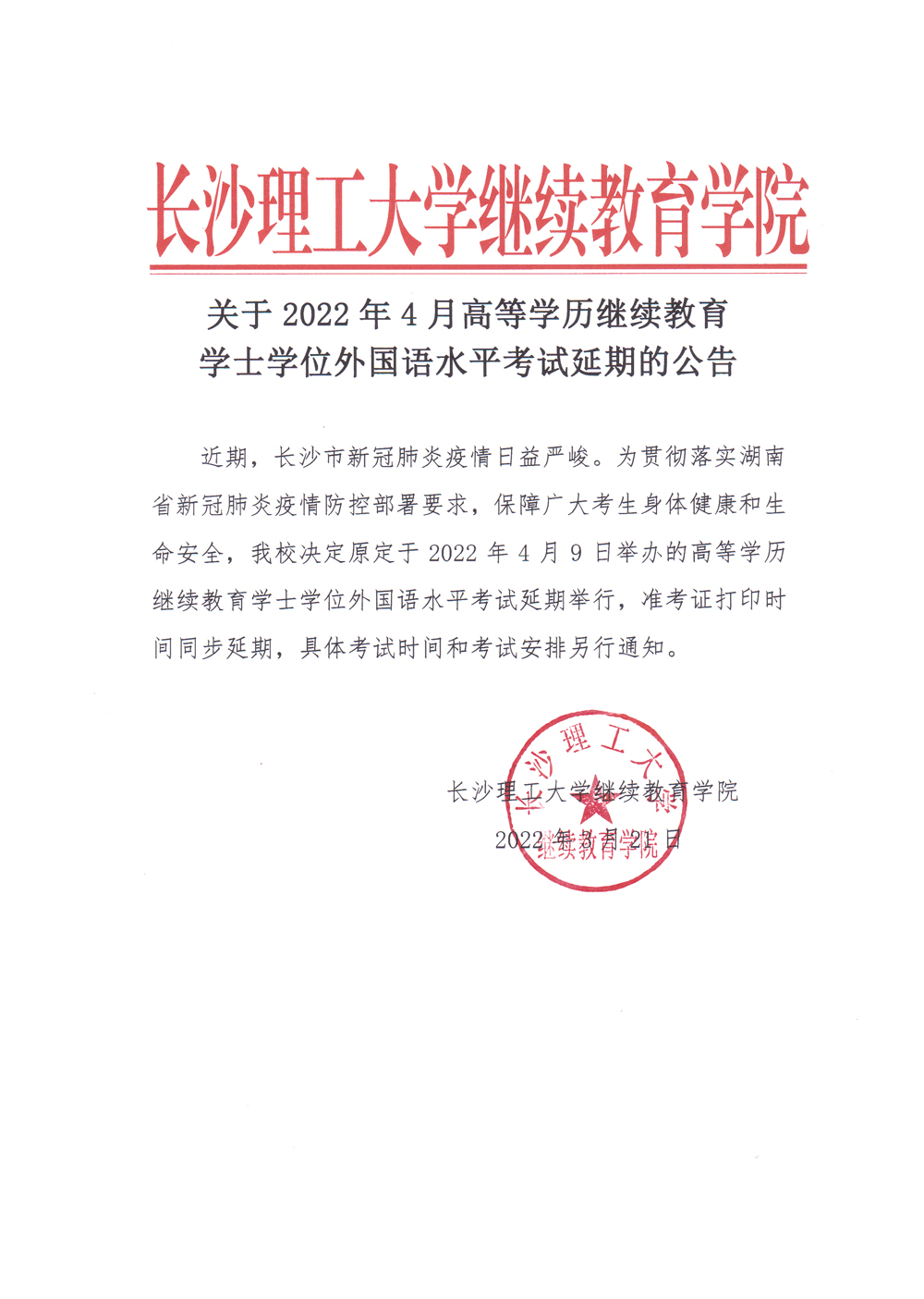 关于2022年4月高等学历继续教育学士学位外国语水平考试延期的公告