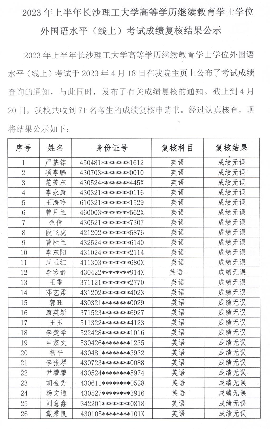 2023年上半年威廉体育williamhill高等学历继续教育学士学位外国语水平(线上)考试成绩复核结果公式