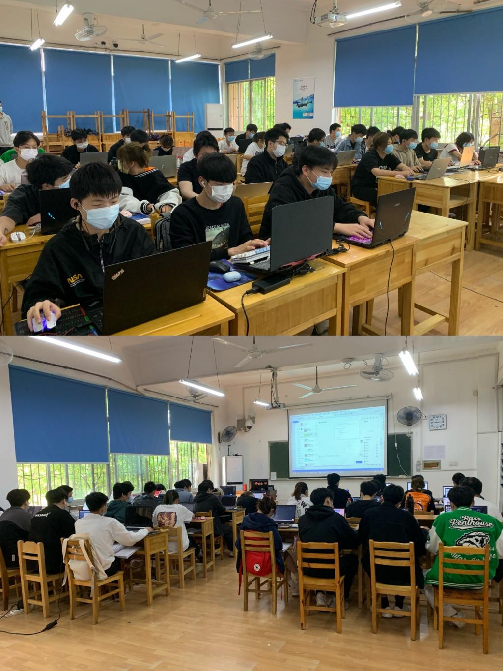 住校的班主任老师参与课堂管理,要求学生全程佩戴口罩,同时任课老师课前五分钟时间要对学生进行防疫知识和要求的宣讲,强化学生防疫意识和防疫政策执行度。