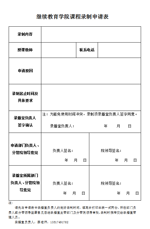 威廉体育williamhill继续教育学院课程录制申请表.docx