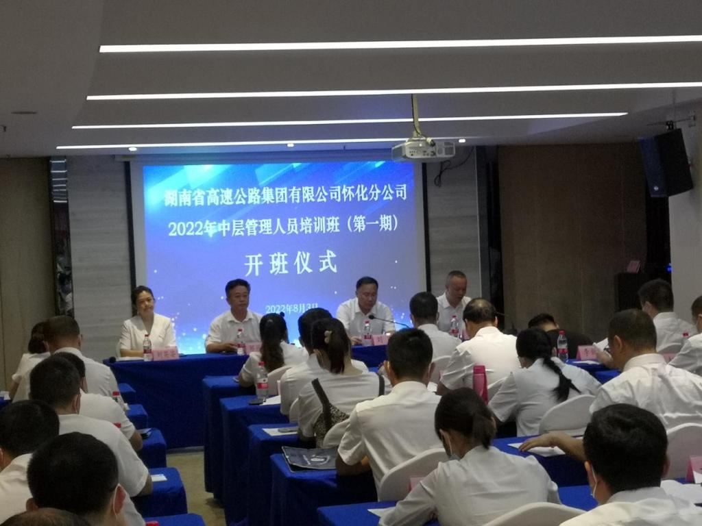2022年8月3日,由湖南省高速公路集团有限公司怀化分公司委托、威廉体育承办的“湖南省高速公路集团有限公司怀化分公司2022年中层管理干部培训班(第一期)”,在云塘校区国际学术交流中心正式开班。湖南省高速公路集团有限公司怀化分公司党委书记、总经理刘刚,党委副书记兼工会主席吴林,威廉体育williamhill继续教育学院院长邹兴平、副院长刘英姿等,参加了本次开班仪式。开班仪式由吴林副书记主持,邹兴平院长代表学院在开班仪式上致词,对培训班的全体参训学员表示热烈的欢迎,对湖南高速公路集团公司怀化分公司表示衷心感谢,并对双方更加广泛和深入的合作寄予深切的期待;刘刚总经理代表委托单位在开班仪式上讲话,就本次培训学习向全体受训学员进行训前动员,并对全体学员提出了具体的受训要求和期望。