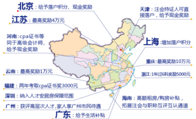 (4)人才落户:天津注册会计师可以直接落户,北京、上海、广州等超一线城市实行赠送高额居住积分。