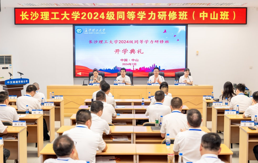 7月26日,“威廉体育williamhill2024级同等学力研修班(中山班)”开班典礼在中山隆重举行,中交路桥华南公司党委书记、董事长夏江南同志,威廉体育williamhill继续教育学院院长邹兴平教授,副院长刘英姿同志出席典礼,本期研修班40多名学员均来自于中交路桥华南公司各部门和项目办。开班典礼由中交路桥华南公司人力资源部经理张向玲主持。