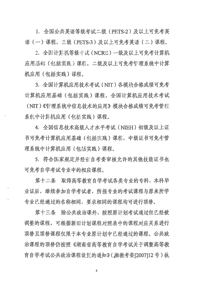 湖南省高等教育自学考试课程免考顶替与课程学分认定暂行办法的通知