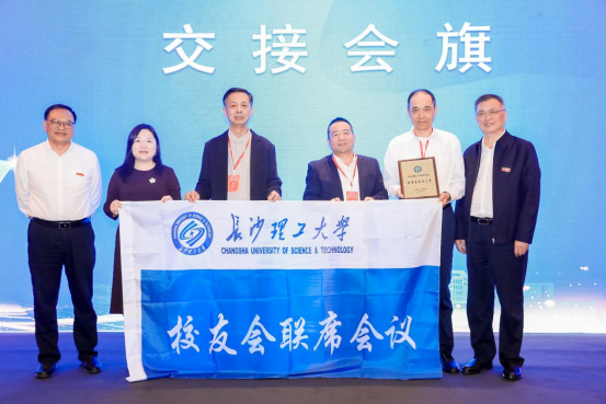 会旗交接仪式上,谈传生为下一届联席会议承办单位上海校友会颁发了会旗、会牌。
