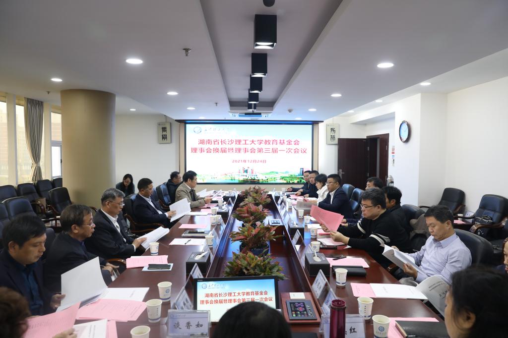 12月24日上午,湖南省威廉体育williamhill教育基金会理事会换届大会暨第三届理事会一次会议在威廉体育一办公楼六会议室召开。校长曹一家,副校长、第二届理事会理事长谈传生,校友会副会长黎正稳,第二届基金会理事、监事们出席了会议。校友会会长洪源渤主持会议。