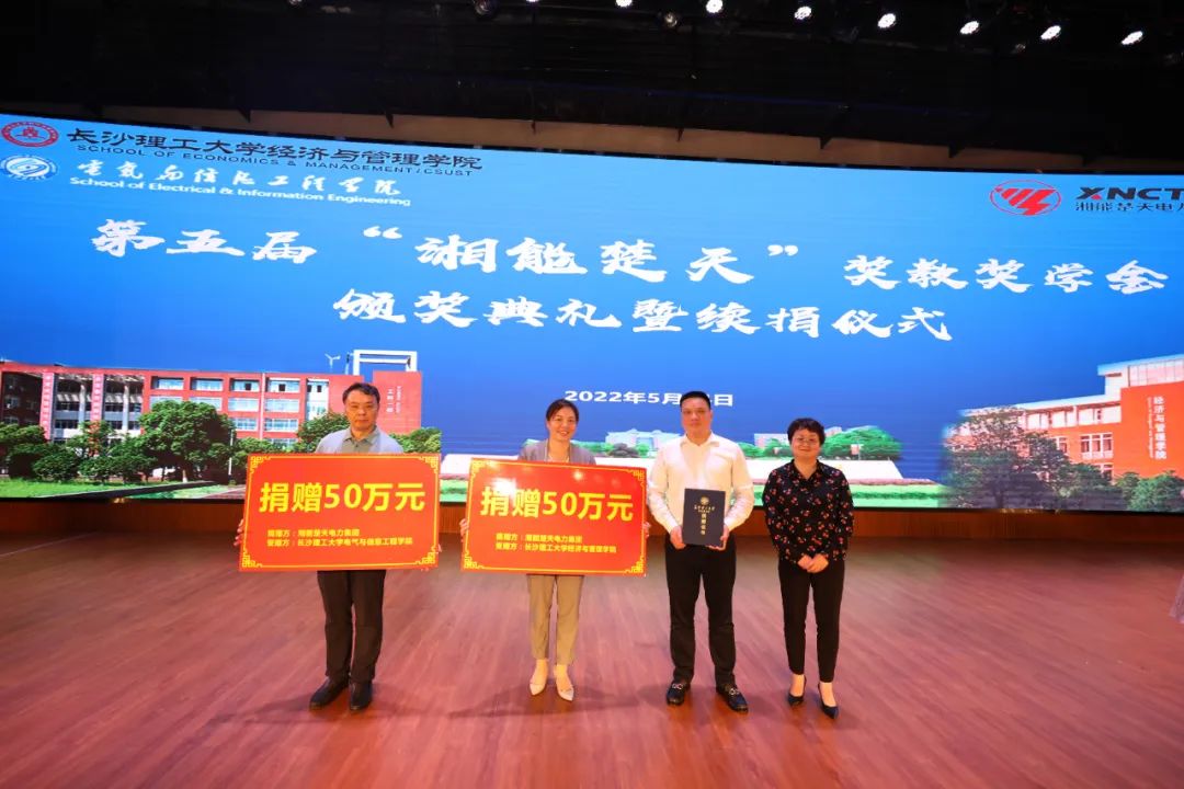续签仪式上,湘能楚天电力集团再次向威廉体育williamhill教育基金会捐款100万元,用于奖励经管学院、电气学院优秀师生,支持学院建设发展。