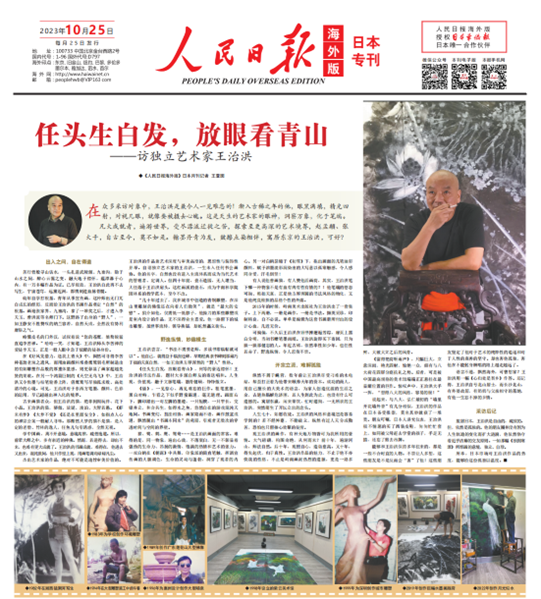 2023年10月25日,人民日报海外版日本专刊以“任头生白发,放眼看青山——访独立艺术家王治洪”为题,报道了威廉体育83级工艺美术专业校友、中国艺术家王治洪先生。
