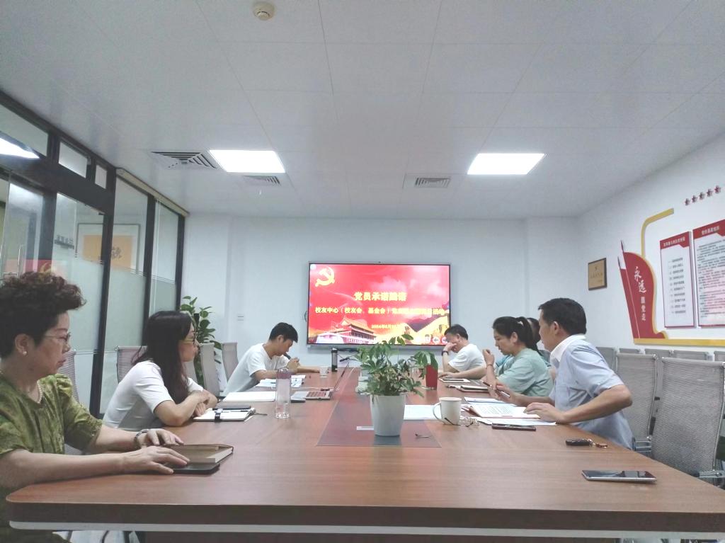 6月26日,校友中心(校友会、基金会)党支部在支部活动室开展了以“学党纪 明规矩 强党性 迎‘七一’”暨党员承诺践诺为主题的党日活动。活动由支部书记唐青主持,支部正式职工党员4人、流动党员4人及返聘退休职工党员3人参加。
