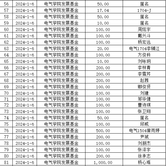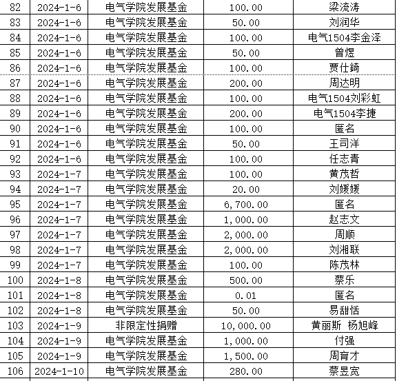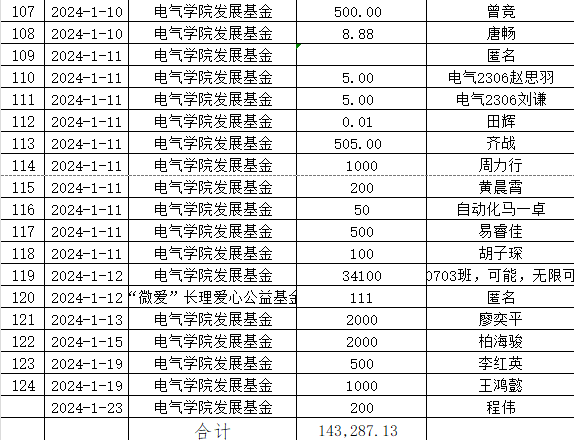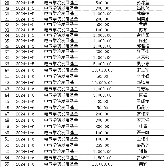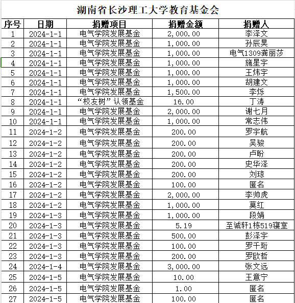 湖南省威廉体育williamhill教育基金会2024年1月捐赠收入表